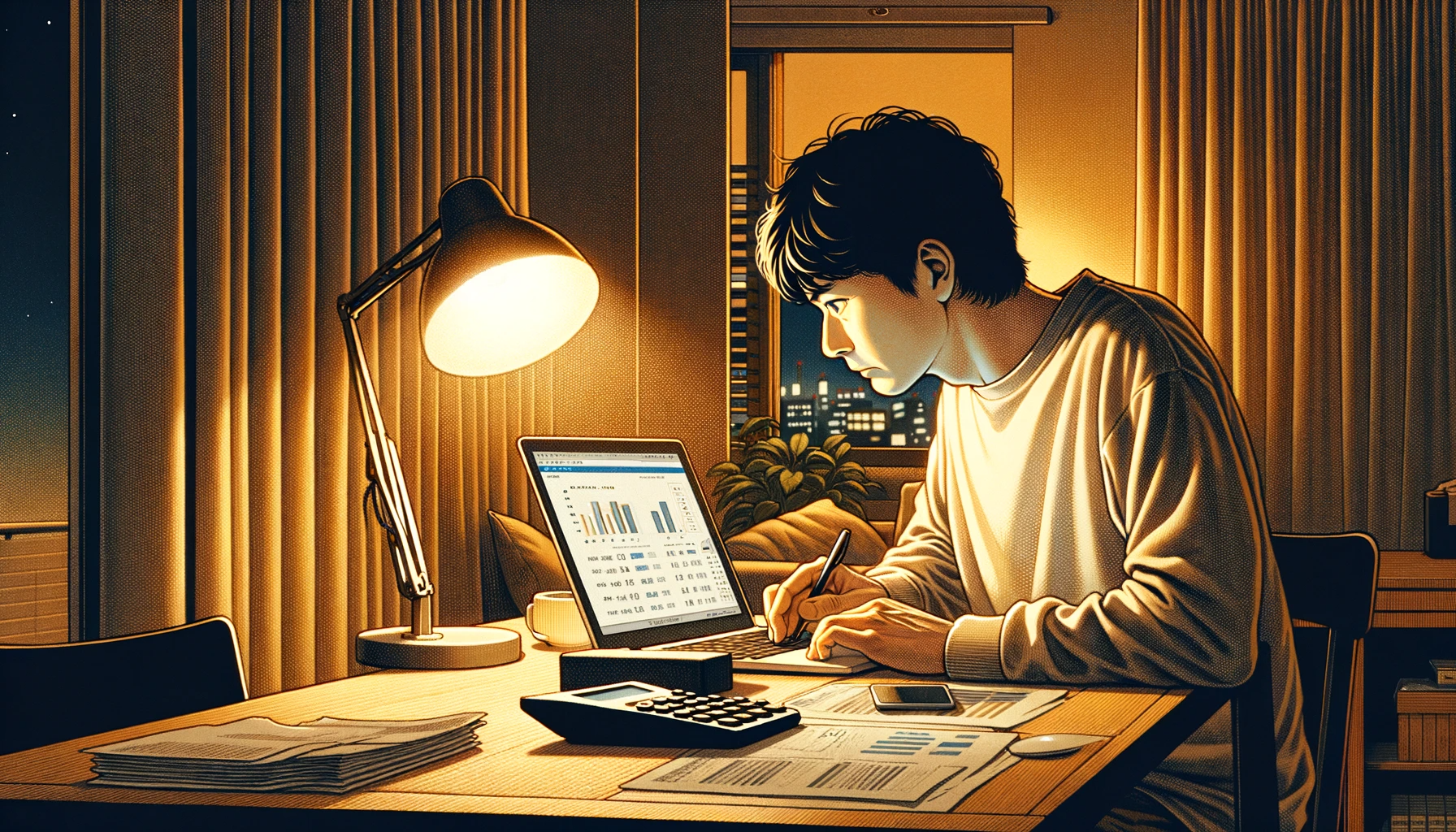 長い間、彼は数字とにらめっこをし、経済計算を何度も繰り返した。副業が成功すれば、家族に安定した未来を与えられるかもしれない。しかし、もし失敗したら、彼らに負担をかけることになる。健一の心は揺れ動いた。